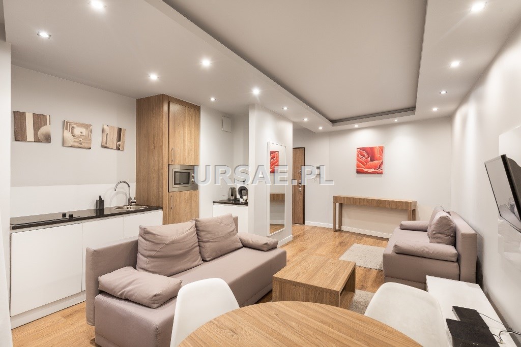 Apartament 52 m kw. oferuje nowoczesne klimatyzowane wnętrze z sypialnią oraz salonem połączonym z aneksem kuchennym. Do lokalu przynależy również loggia. Aneks kuchenny wyposażono w lodówkę, pralkę, zmywarkę do naczyń, płytę grzewczą, oraz niezbędne wyposażenie do przygotowania posiłku. W sypialni znajduje się dwuosobowe łóżko. W salonie TV.