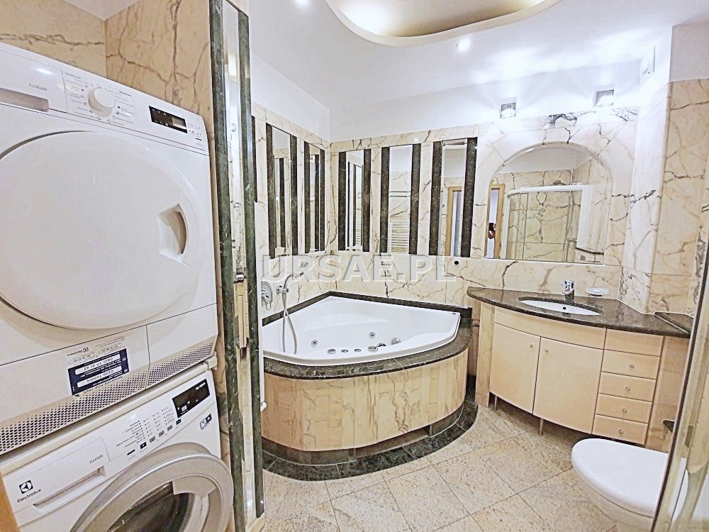 Mieszkanie składa się z:  w pełni wyposażonej kuchni z wysokiej jakości sprzętem AGD, 2 dwuosobowych sypialni każda z jednym tarasem, łazienki z prysznicem i jacuzzi, toalety gościnnej, garderoby, miejsca parkingowego.